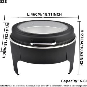 - Good Helper for Catering – Gold round chafing dish Made with high-quality thickened stainless steel, gold chafing dishes maintain the food’s perfect serving temperature within hours. It can keep the food warm and refreshing, just like someone just turned the stove off. The large capacity of 6.8-quarts perfectly accommodates the food the guests need