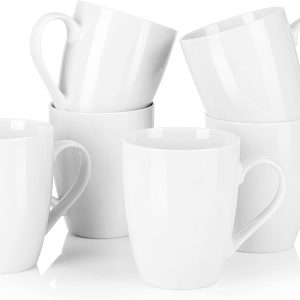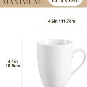 - PERFECT CAPACITY- Each coffee mug holds 340ML, 4.6″ x 4.1″/ 11.7cm x 10.5 cm, mugs sets of 6. MALACASA white porcelain mugs set are perfect for cappuccino, coffee, tea, cocoa, mulled drinks, cap, cereal, oatmeal or protein shakes for you and your guests. Nice feel to them, both in weight and materials. Perfect size and shape, it’s also great for brewing from the coffee machine.
